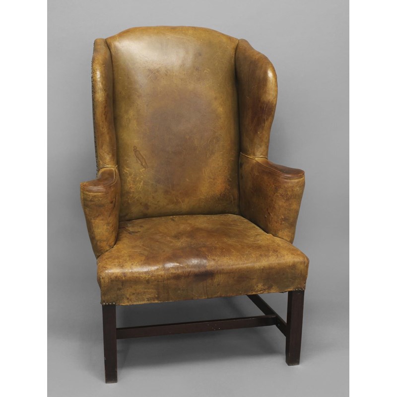 A LATE 18TH CENTURY WINGBACK LEATHER ARMCHAIR,