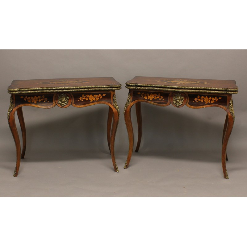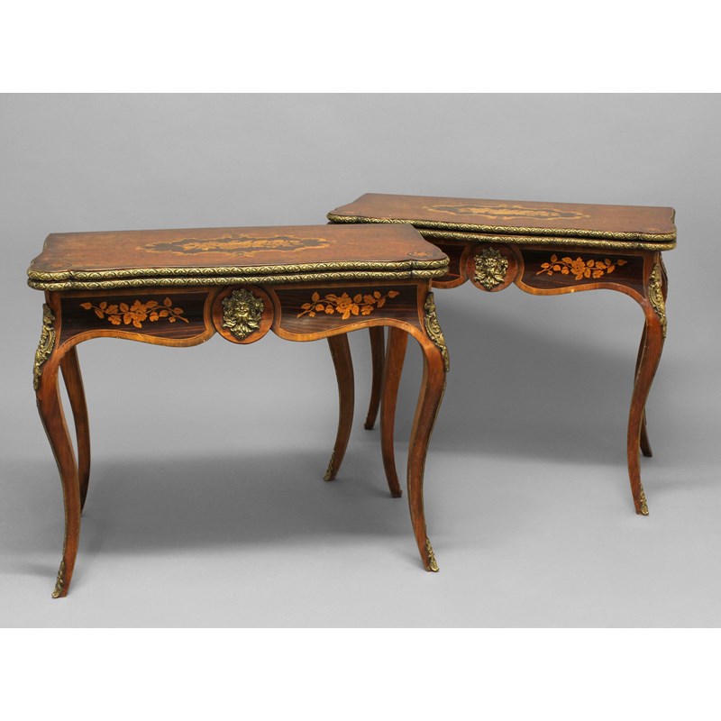 A PAIR OF LOUIS XV STYLE MARQUETRY INLAID CARD TABLES,