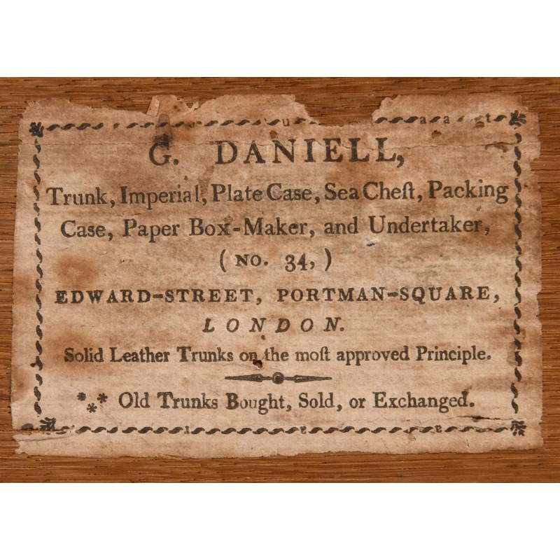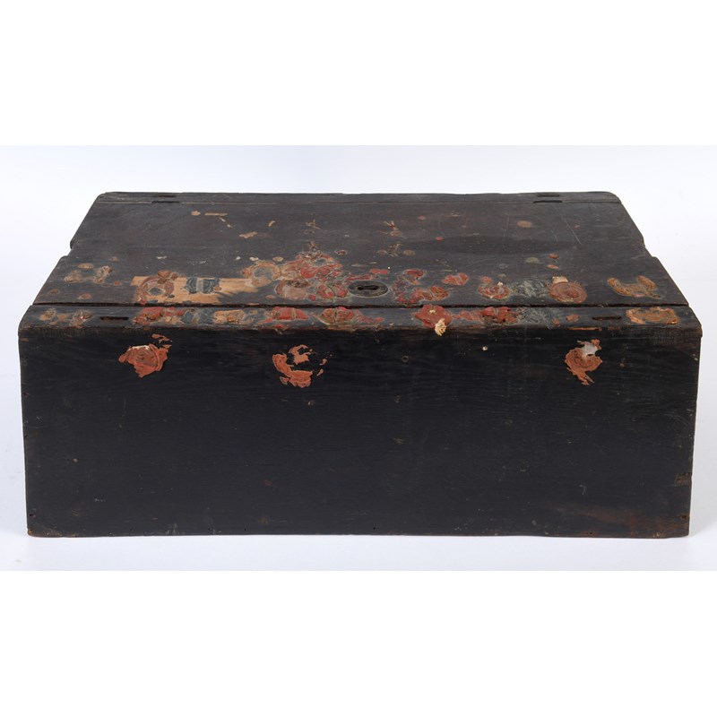 A Painted Oak Box, the hinged lid with the remains of various wax seal impressions (including that of the Moulton coat of arms). The Interior with makers label of G. Daniell, Edward St, Portman Square, Early 19th Century, 56 x 28 cms