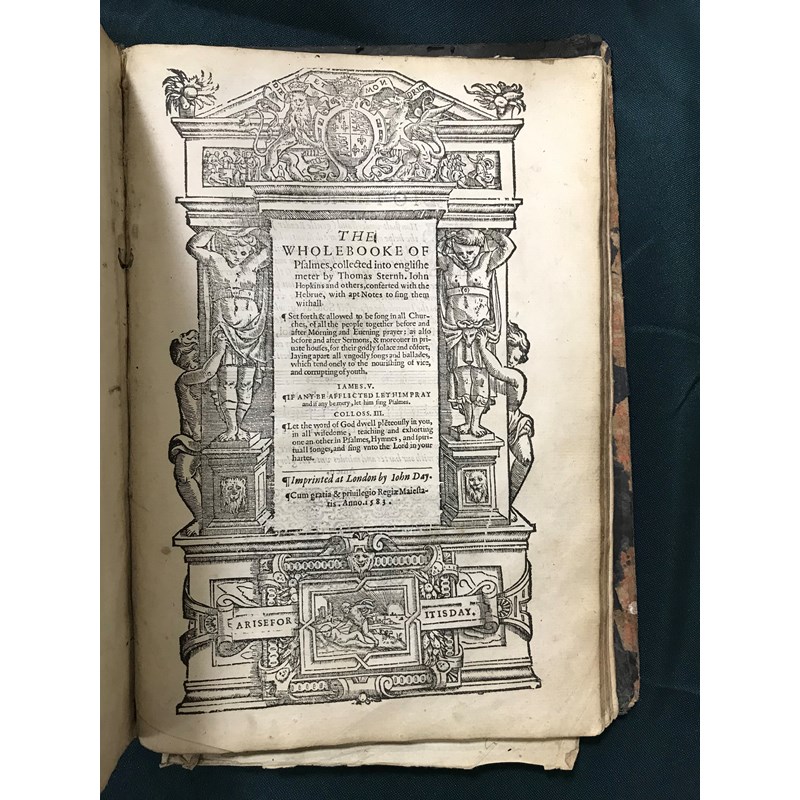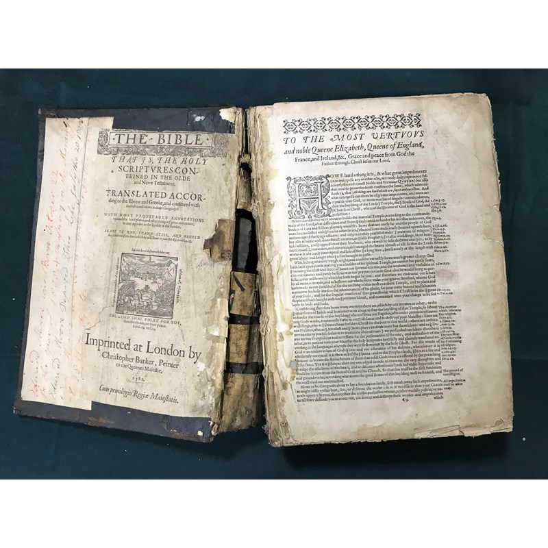 Bible, English. The Bible, That is, The Holy Scriptures conteined in the Olde and Newe Testament..., lacking all before ¶ii, and all after Psalmes Hv, wood-engravings, soiled, defective, contemporary calf, worn, 4to, [London: Christopher Barker, 1582], sold w.a.f.