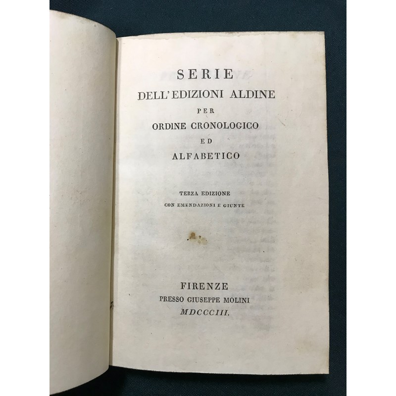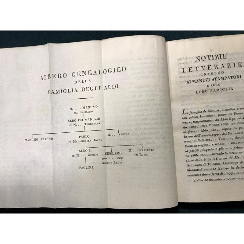 [Burgassi, Antonio Cesare] Serie dell'Edizioni Aldine per ordine cronologico ed alfabetico, 'third' edition, folding genealogical table, contemporary calf, rubbed, bookplate of Merthyr Guest, 8vo, Firenze: Giuseppe Molini, 1803
