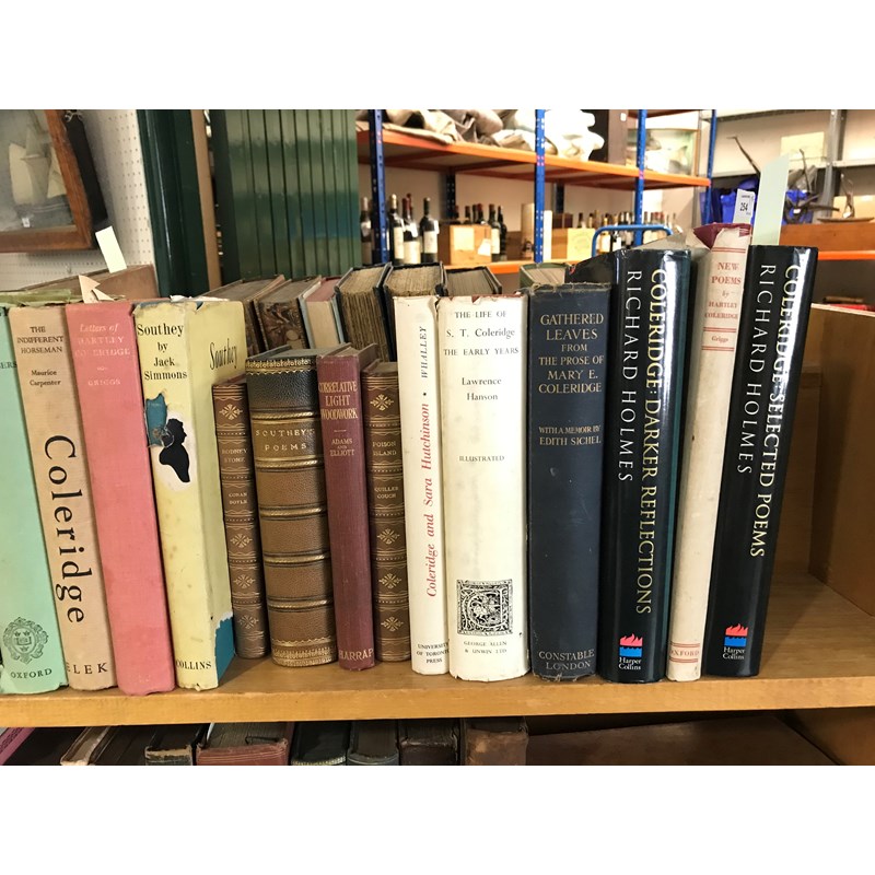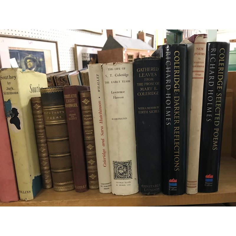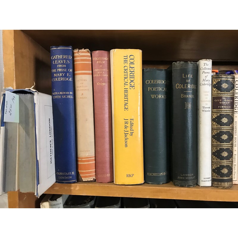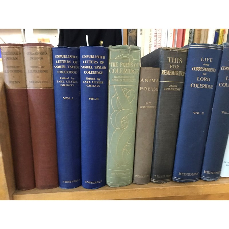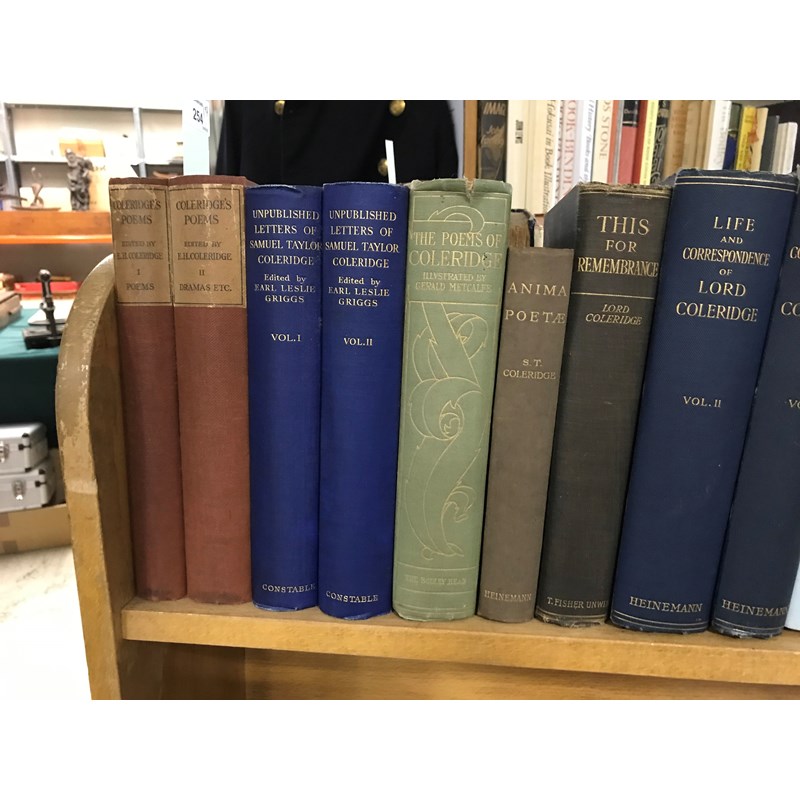 Coleridge, Samuel Taylor. The Complete Poetical Works... edited by Ernest Hartley Coleridge, 2 volumes, first edition, inscribed 'To Gerard Hartley Buchanan Coleridge from Ernest Hartley Coleridge', some spotting, original cloth, 8vo, Oxford: Clarendon Press, 1912; Unpublished Letters... edited by Earl Leslie Griggs, 2 volumes, original cloth, 8vo, London: Constable and Co., 1932; The Poems of Coleridge... illustrations by Gerald Metcalfe, original cloth gilt, 8vo, London: John Lane, [n.d.]; and 92 others, mostly concerning Samuel Taylor Coleridge and his family, v.s. (97)