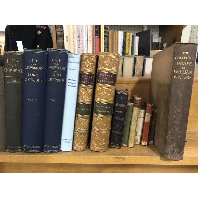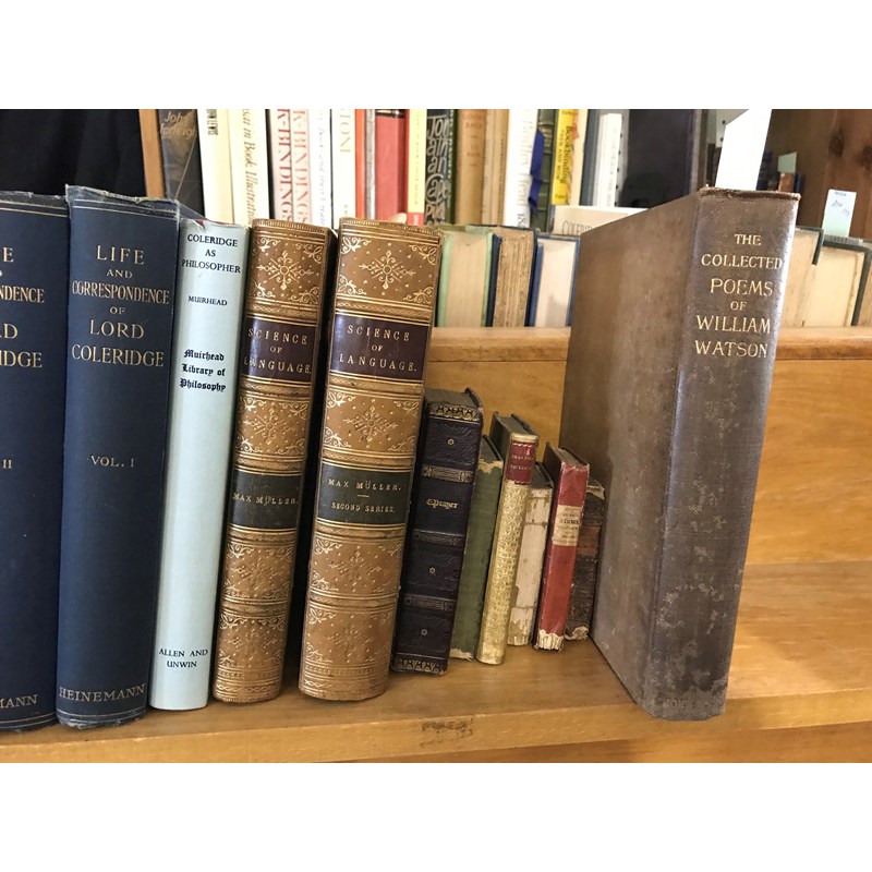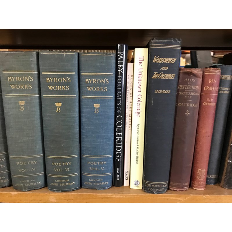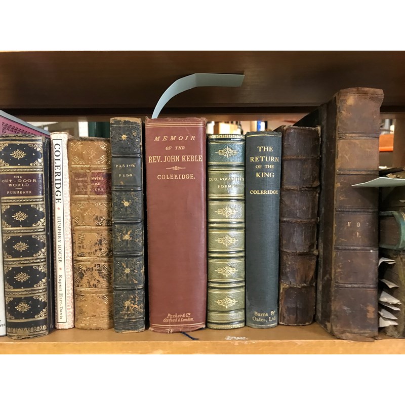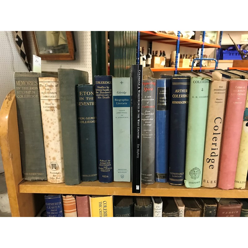 Coleridge, Samuel Taylor. The Complete Poetical Works... edited by Ernest Hartley Coleridge, 2 volumes, first edition, inscribed 'To Gerard Hartley Buchanan Coleridge from Ernest Hartley Coleridge', some spotting, original cloth, 8vo, Oxford: Clarendon Press, 1912; Unpublished Letters... edited by Earl Leslie Griggs, 2 volumes, original cloth, 8vo, London: Constable and Co., 1932; The Poems of Coleridge... illustrations by Gerald Metcalfe, original cloth gilt, 8vo, London: John Lane, [n.d.]; and 92 others, mostly concerning Samuel Taylor Coleridge and his family, v.s. (97)
