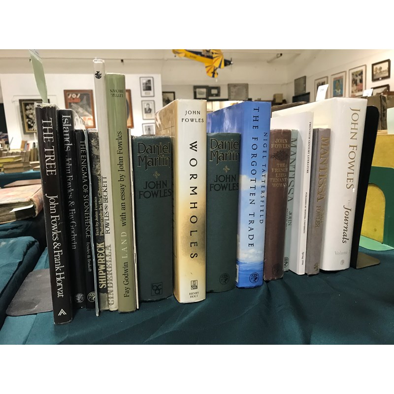 Fowles, John. Cinderella, 1974; Shipwreck, 1974; The Tree, dust-jacket torn and repaired, 1979; Islands, 1978; The Enigma of Stonehenge, 1980; Mantissa, 1982; NT Study Notes: Lorenzaccio, [1984]; Medieval Lyme Regis, 600 copies only, 1984; Land, 1985; Wormholes, first American edition, 1998; John Fowles, The Journals, volume 1, 2003; all signed first editions, many dated, original cloth, dust-jackets, in mylar sleeves, together with 5 others by the same author, v.s. (17)