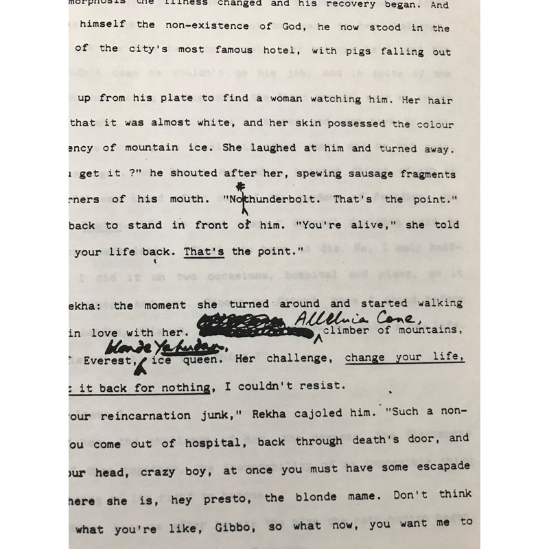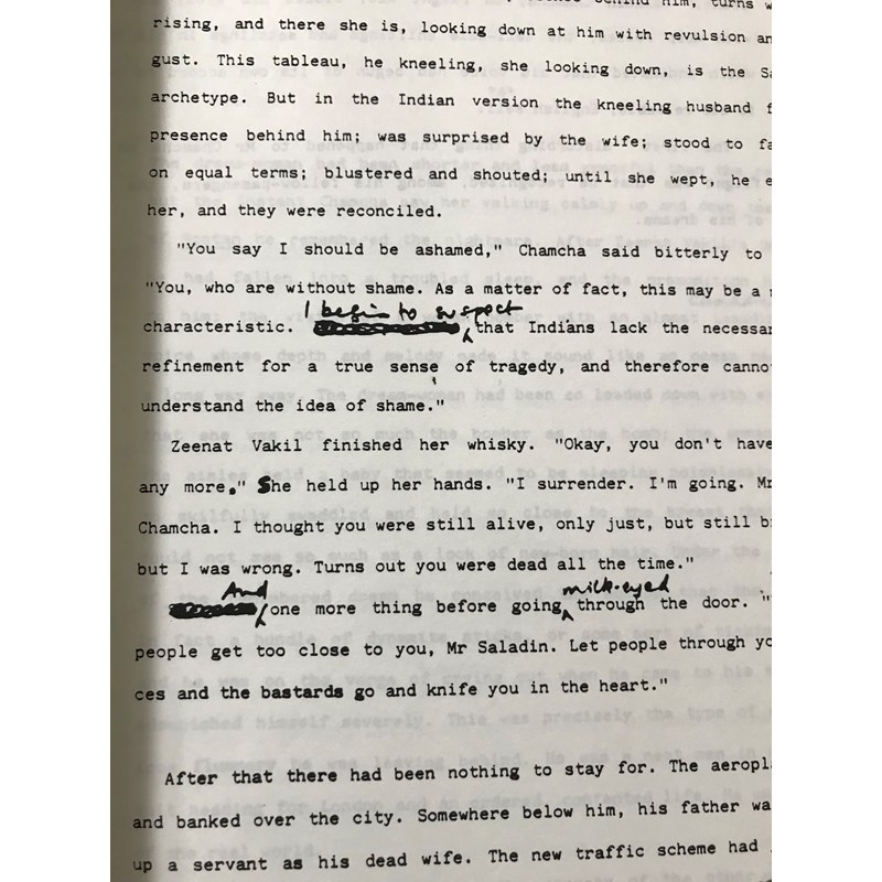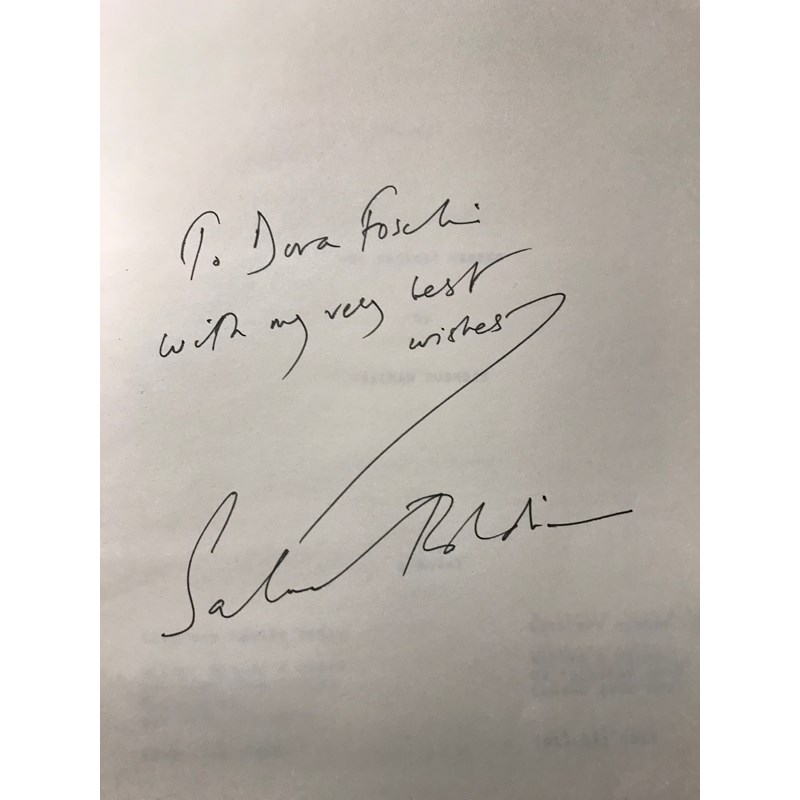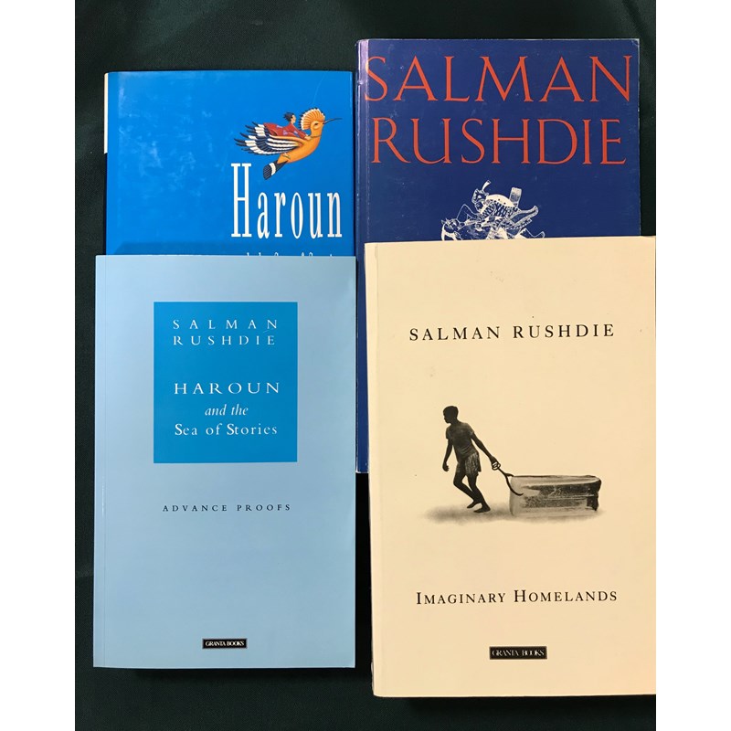 Rushdie, Salman. The Satanic Verses, a photocopy of a corrected typescript, 310 leaves approx., with a cover sheet, inscribed 'To Dora Foschi with my very best wishes, Salman Rushdie', in binder, c. 1988; [The Satanic Verses], advanced proof copy, without title, original wrappers, 8vo, London: Viking, 1988; Haroun and the Sea of Stories, uncorrected advance proof copy, original wrappers, 8vo, London: Granta, 1990; another issue, first edition, original cloth, dust-jacket, 8vo, London: Granta, 1990; Imaginary Homelands, uncorrected advance proof copy, original wrappers, 8vo, London; Granta Books, 1991 (5)