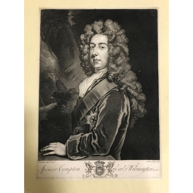 British Prime Ministers. A collection of 24 prints of British Prime Ministers, including: Sir Robert Walpole, Spencer Compton, Henry Pelham, William Cavendish, John Stuart, William Grenville, Rt Hon. William Pitt, Arthur Wellesley, Charles Grey, Lord Palmerston, W. E. Gladstone, Neville Chamberlain and Harold Macmillan, the engraving of Pitt after Gainsborough, 51cm x 68.5cm, the engraving of Macmillan signed by the artist and subject, 49.5 x 66cm, otherwise v.s. (24)