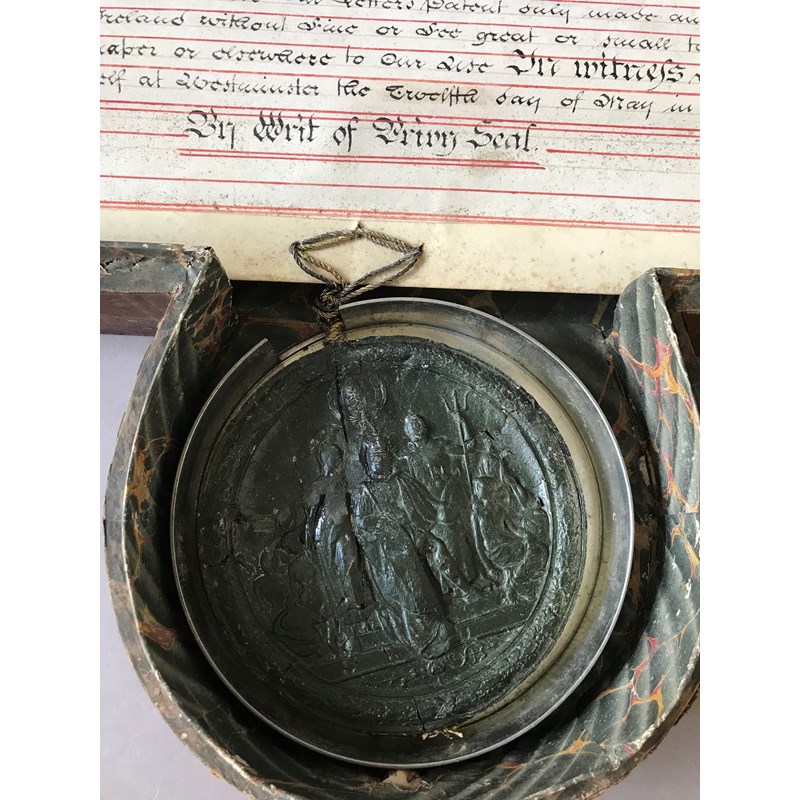 Sir John Byng, 1st Earl of Strafford. A grant of title awarded by Lord Melbourne to Sir John Byng, raising him to Baron Strafford, the manuscript on vellum with decorative border, heightened with gold, rolled in case, with wax seal, 890mm x 690mm approx., [c.1835]