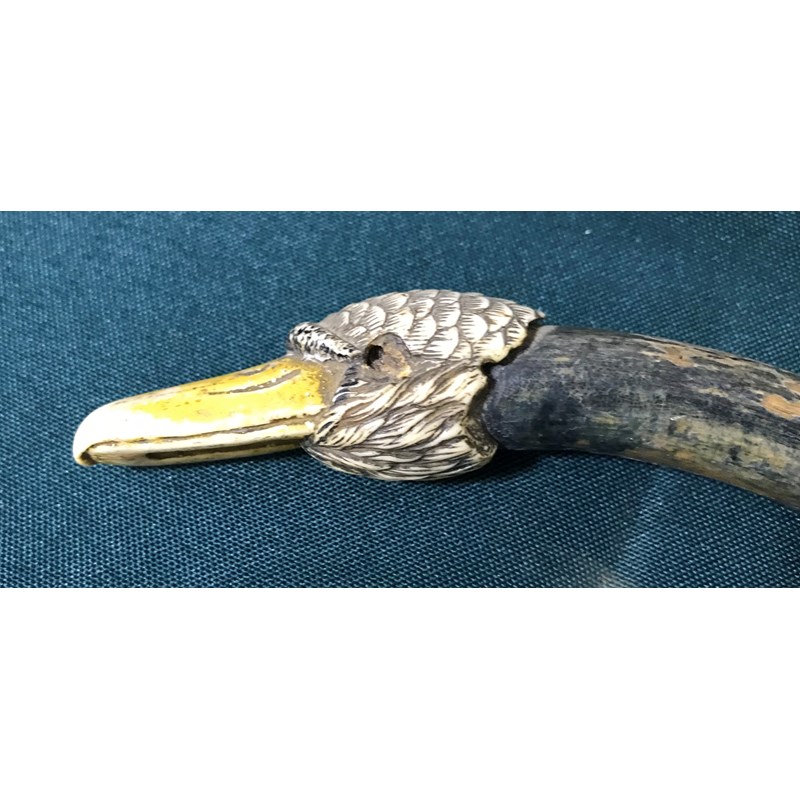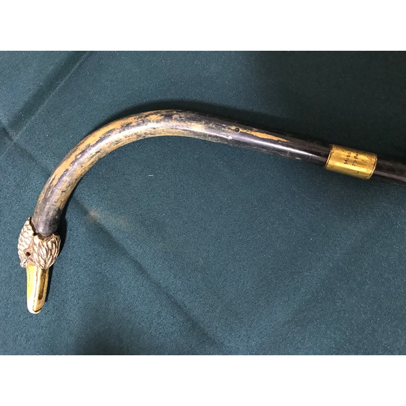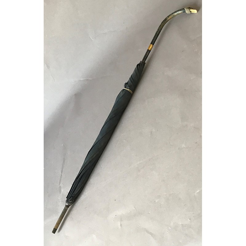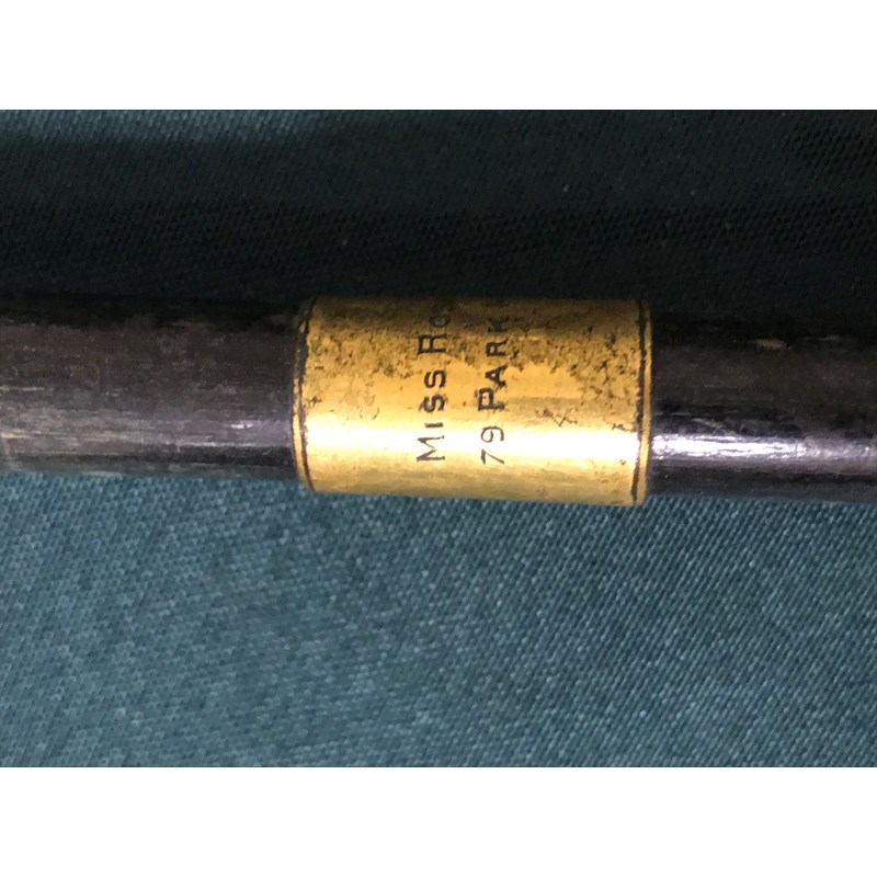 Rose Barton, artist. An umbrella previously owned by Rose Barton, the shaft with metal plaque incised 'Rose Barton, 79 Park Mansions', the handle in the form of a carved swan head, one eye missing, 98cm length, c.1910