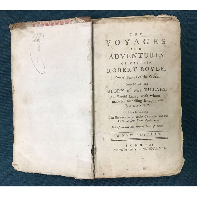 Boyle, Robert. The Voyages and Adventures of Captain Robert Boyle, In Several Parts of the World, new edition, lacking half-title, soiled throughout, a few leaves with marginal tears, contemporary half calf, worn, 8vo, London: [no publisher], 1771
