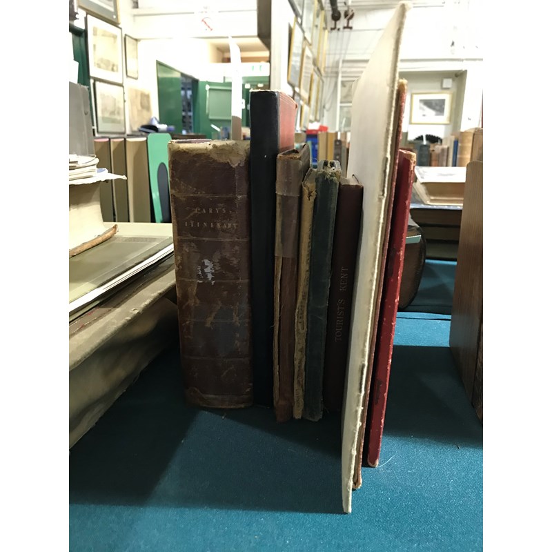 Cary, John. Cary's New Itinerary: or An Accurate Delineation of the Great Roads, Both Direct and Cross throughout England and Wales, eleventh edition, 6 folding engraved maps, without general folding map, title repaired, contemporary red roan, spine repaired, 8vo, London: G. and J. Cary, 1828; and 9 others, British topography, v.s. (10)