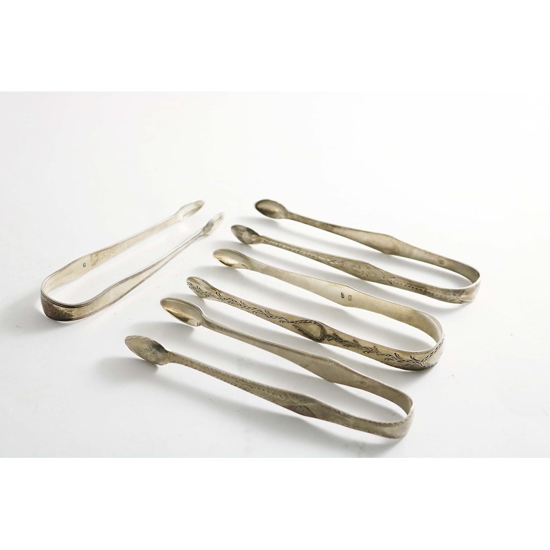 A PAIR OF BRIGHT-CUT SUGAR TONGS