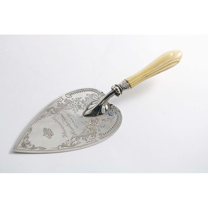 AN EARLY 20TH CENTURY IVORY-HANDLED PRESENTATION TROWEL