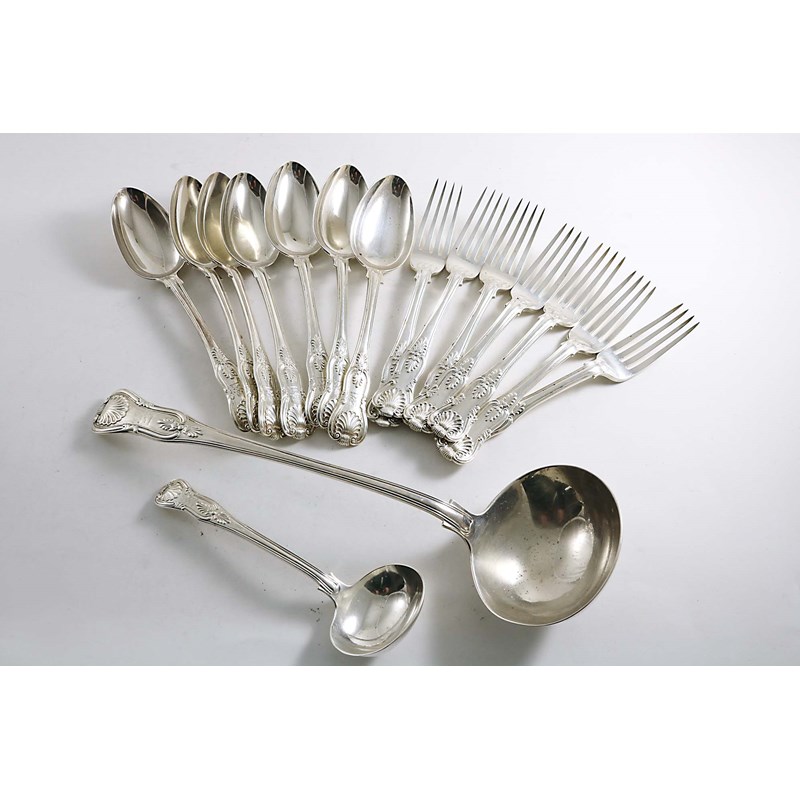 A PART SET OF VICTORIAN KING'S PATTERN FLATWARE