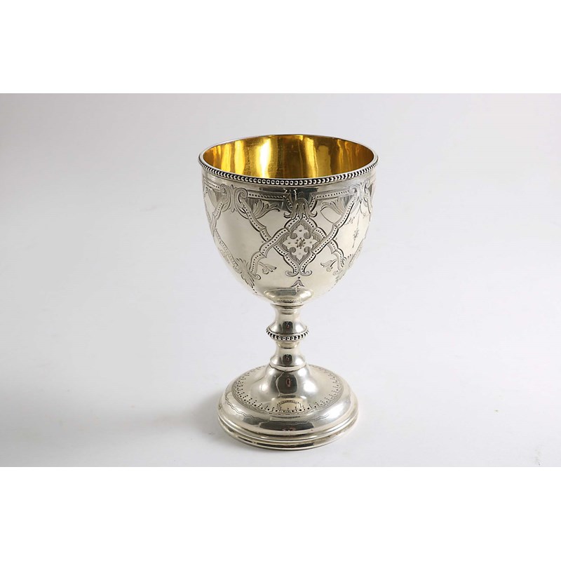 A VICTORIAN ENGRAVED GOBLET with bead borders and a gilt interior, by Alexander Macrae, London 1864; 5.5" (14 cms) high; 6.5 oz