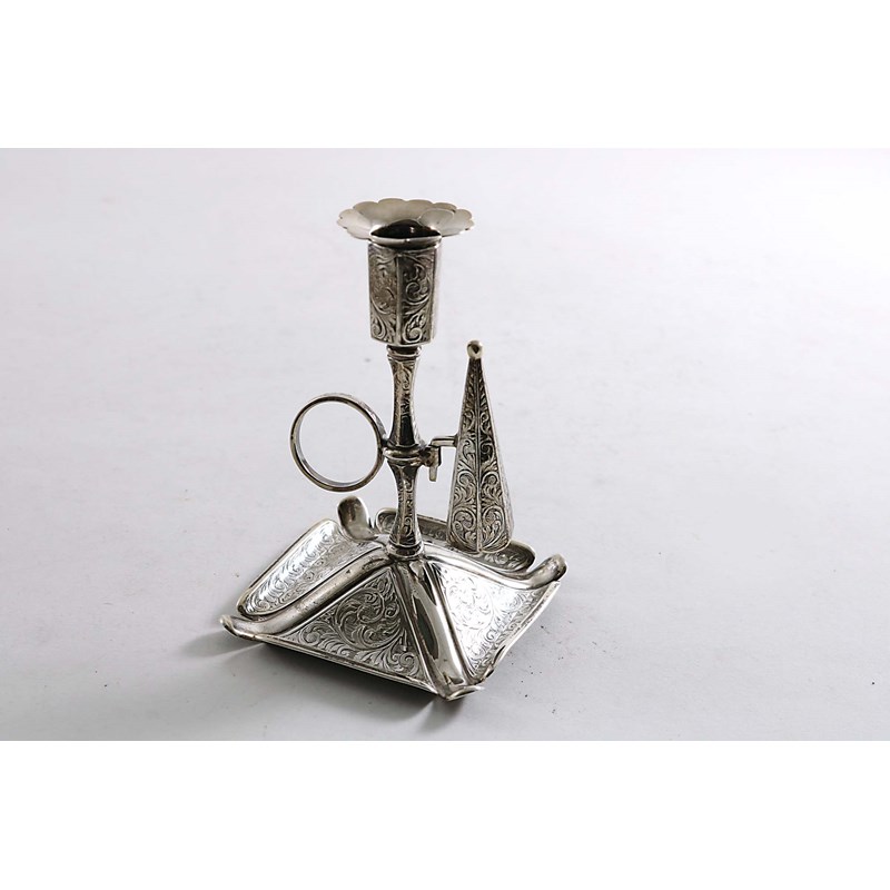 with a domed square base, a ring handle & a detachable snuffer and nozzle by Joseph Wilmore,(of Birmingham), with London hallmarks for 1844; 3.5" (9 cms) high; 1.95 oz