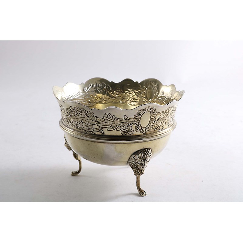 on three lion mask & paw feet, with a reeded girdle, and chased decoration below a shaped rim, by the Royal Irish Silver Co., Dublin 1969 (struck also with Sheffield Assay Office import marks); 4.8" (12.2 cms) diameter; 9.5 oz