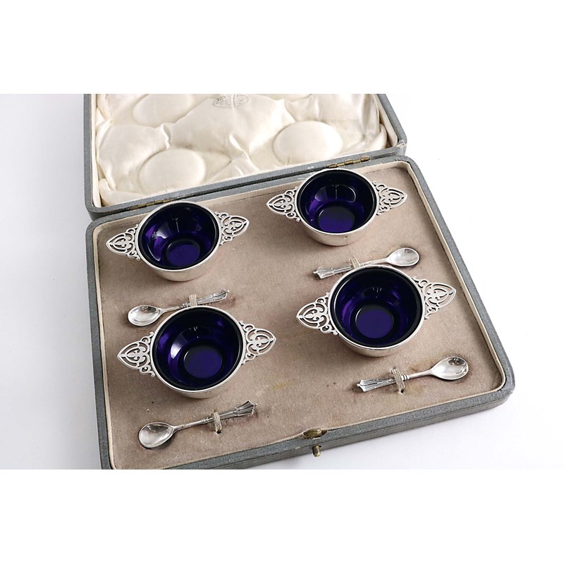 AN EARLY 20TH CENTURY CASED SET OF FOUR SALTS