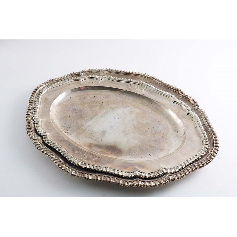 A GRADUATED PAIR OF EARLY GEORGE III MEAT DISHES