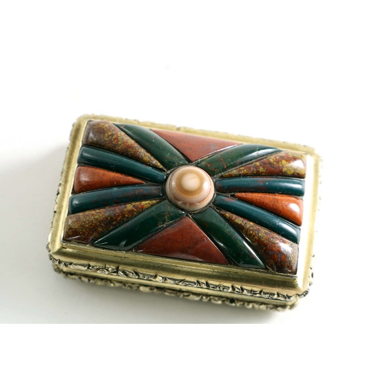 A GEORGE IV SILVERGILT MOUNTED COLOURED HARDSTONE VINAIGRETTE, (for the Scottish market), with chased borders, reeded sides and an engine-turned base, by Taylor & Perry, Birmingham 1829; 1.75" (4.4 cms) long; 1.35 oz gross
