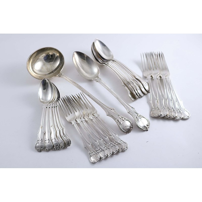 A VICTORIAN PART SERVICE OF VICTORIA PATTERN FLATWARE INCLUDING:-