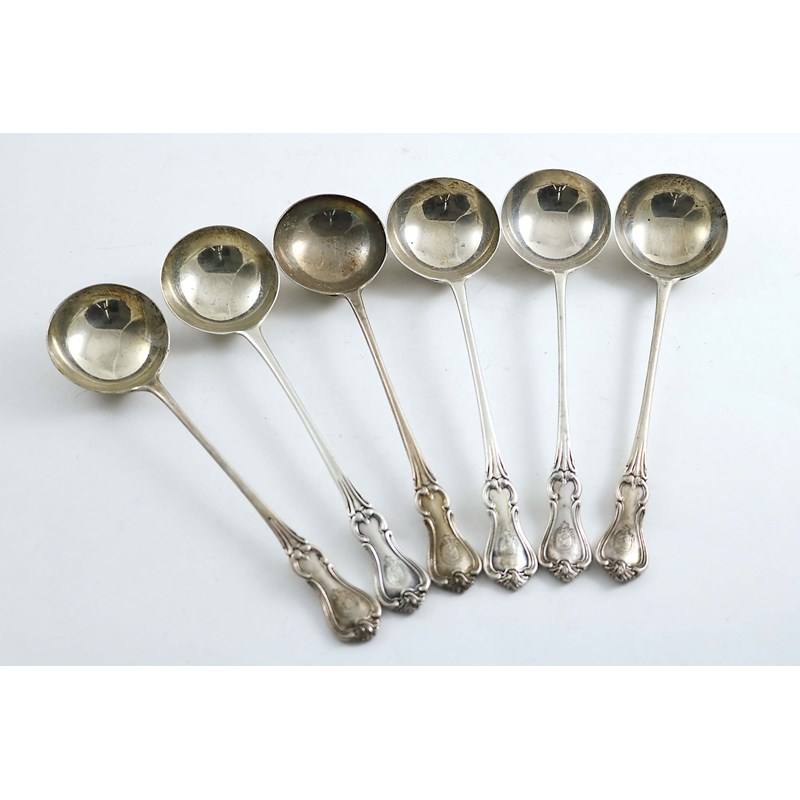 Albert pattern, each engraved with a strap & buckle cartouche & the initial "F", by S. Hayne & D. Cater, London 1852; 7" (18 cms) long; 8.6 oz (6)