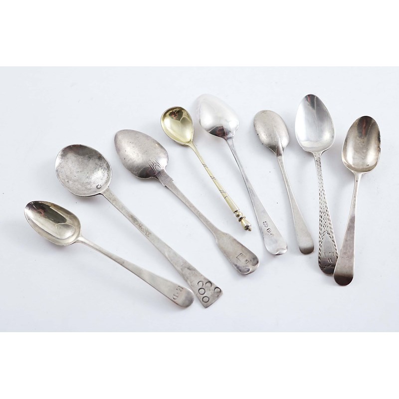 EIGHT VARIOUS SMALL SPOONS (Russian, Newcastle, Channel Isles, etc.); 2.8 oz (8)