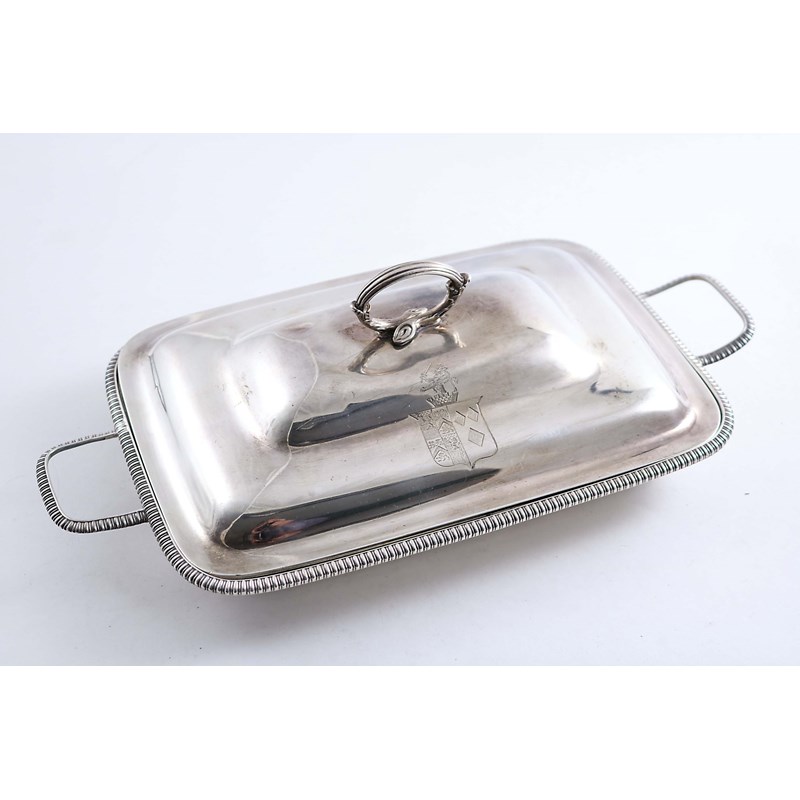 A GEORGE III RECTANGULAR BACON DISH & COVER