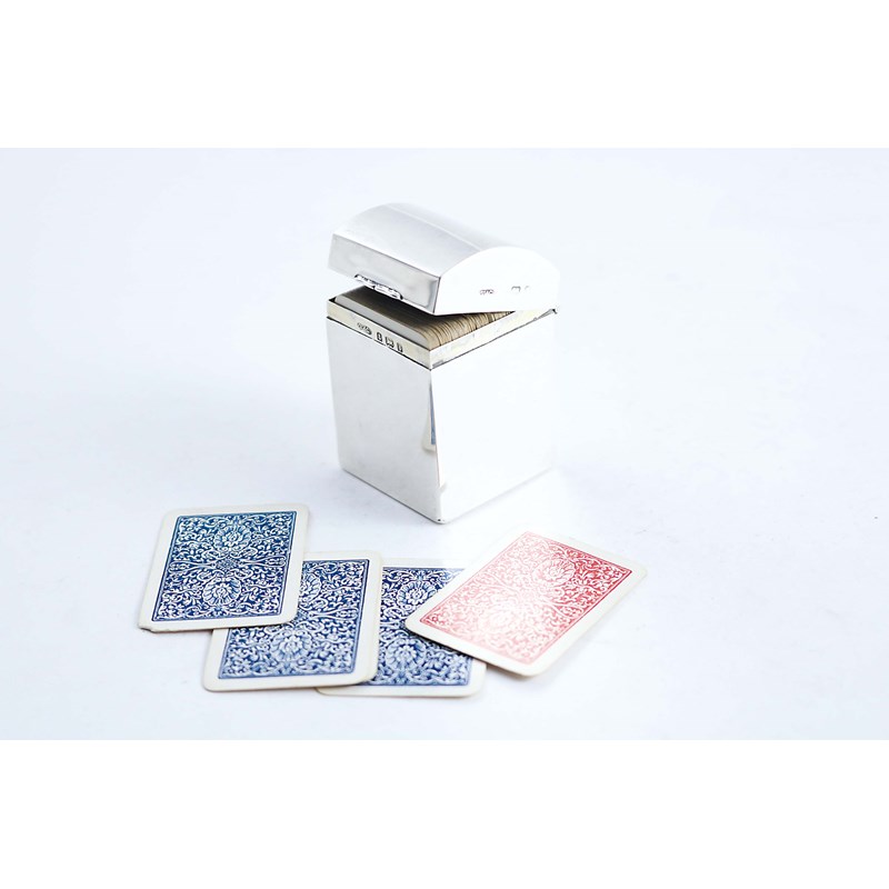 A LATE VICTORIAN / EDWARDIAN MINIATURE PLAYING CARDS BOX with a domed cover (containing 52 blue cards and 51 red), by Grey & Co., Birmingham 1901; 2" (5 cms) high; 1.1 oz weighable silver