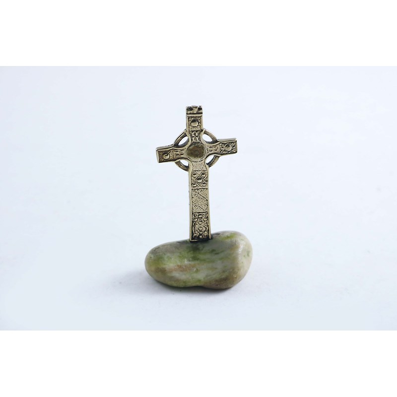 AN EARLY 20TH CENTURY MINIATURE MODEL OF ST. JOHN'S CROSS (ON IONA), on a stone base, by Iain McCormick of Iona; 3.5" (8.5 cms) high