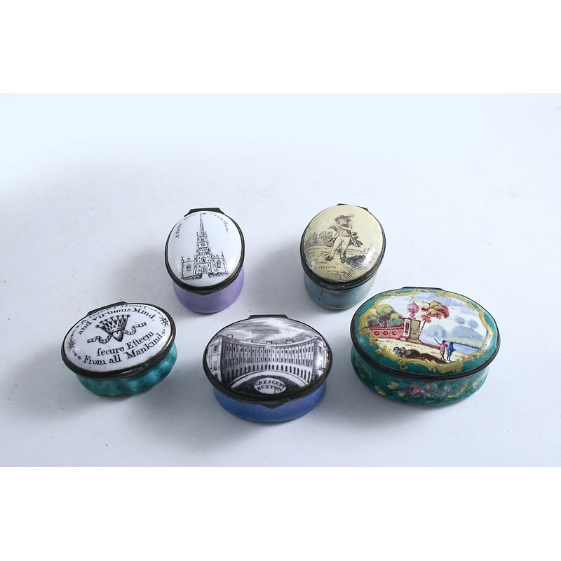 FIVE VARIOUS ENAMEL PATCH BOXES