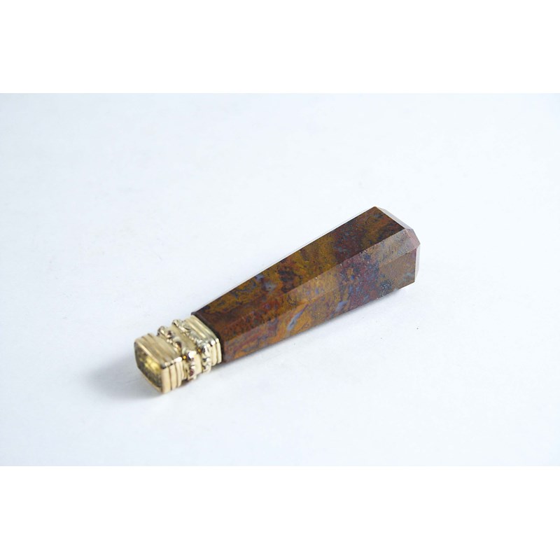 A VICTORIAN DESK SEAL with agate handle, the pale yellow stone engraved "Lisez Et Croyez"; 7 cms