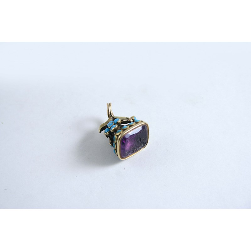 the amethyst intaglio engraved with a sailing ship and motto "Such Is Life"; 2.5 cms high