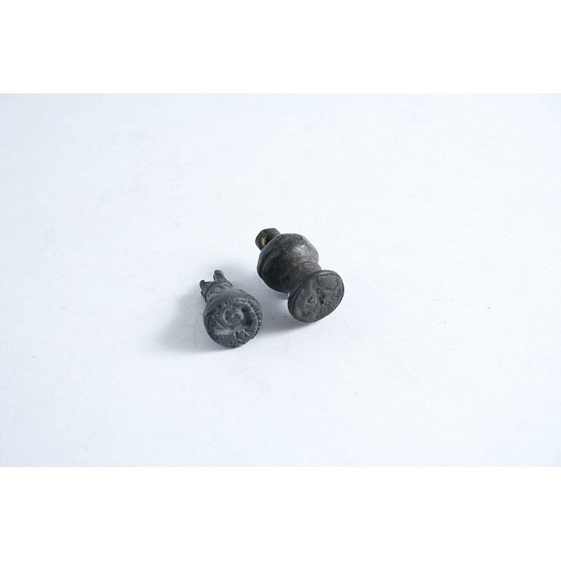 AN EGYPTIAN BRONZE SEAL engraved with a figure above bird's tail and wings, 2 cms and another engraved with a bird, 1.75 cms (C6th-4th A.D.)