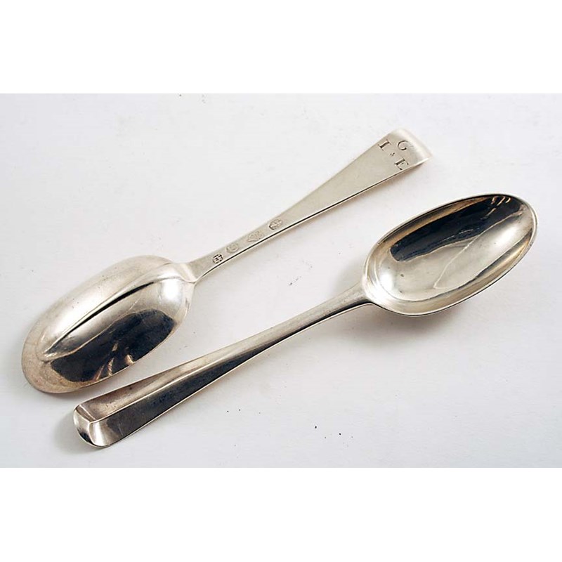 A PAIR OF GEORGE II HANOVERIAN PATTERN TABLE SPOONS