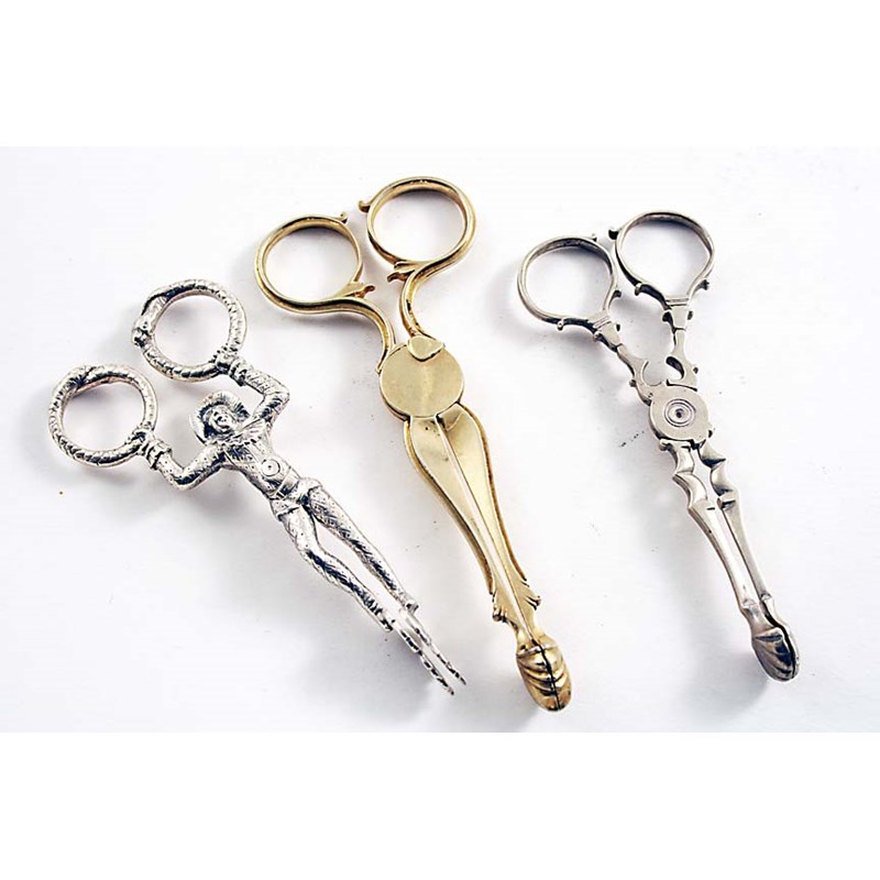 in the form of a Harlequin, with serpent ring handles & English import marks for London 1893, a pair of George III silvergilt sugar nips by Richard Mills, London c.1770 and a pair of George II sugar nips, maker's mark "WP", London c.1745; the gilt pair 5.1" (13 cms) long; 4.3 oz (3)