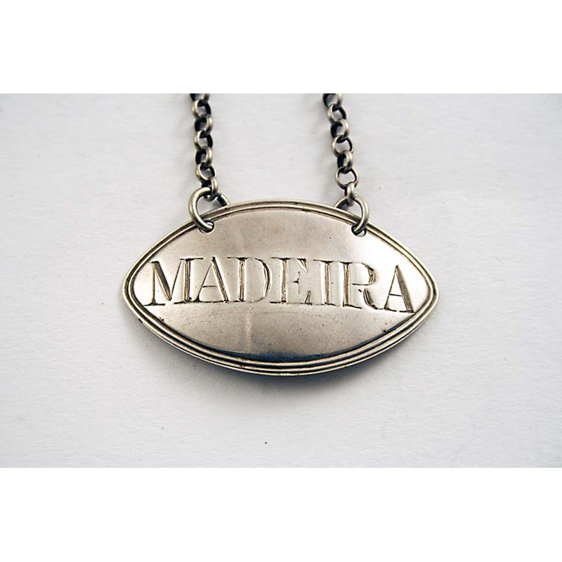 A GEORGE III NAVETTE-SHAPED WINE LABEL with a reeded border, incised "MADEIRA", by T. Phipps & E. Robinson, London 1793; 1.5" (4 cms) long; 0.25 oz