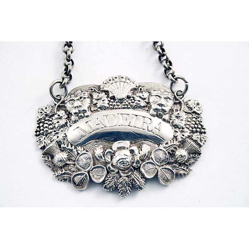 incised "MADEIRA" within a stamped border of fruiting vines, a rose, thistles, shamrock, two lion masks and a scallop shell, by Joseph Angell, London 1819; 2.5" (6.4 cms) long; 0.7 oz