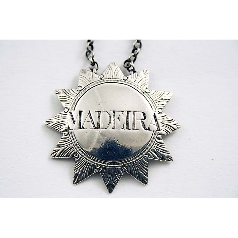 with chased border "rays", incised "MADEIRA", by Susanna Barker, London 1784/85 (no date letter); 1.75" (4.4 cms) wide; 0.35 oz