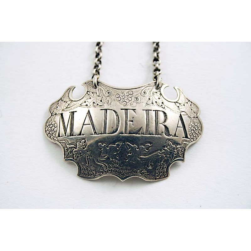 incised "MADEIRA" flanked by chased fruiting vines, the reverse engraved with a crest, unmarked 1750-60; 2.1" (5.3 cms) long; 0.35 oz