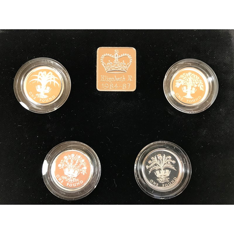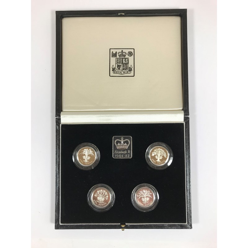 A ROYAL MINT £1 SILVER PROOF PIEDFORT SET. A Royal Mint four coin one pound silver proof Piedfort collection. in plastic capsules in presentation case of issue.