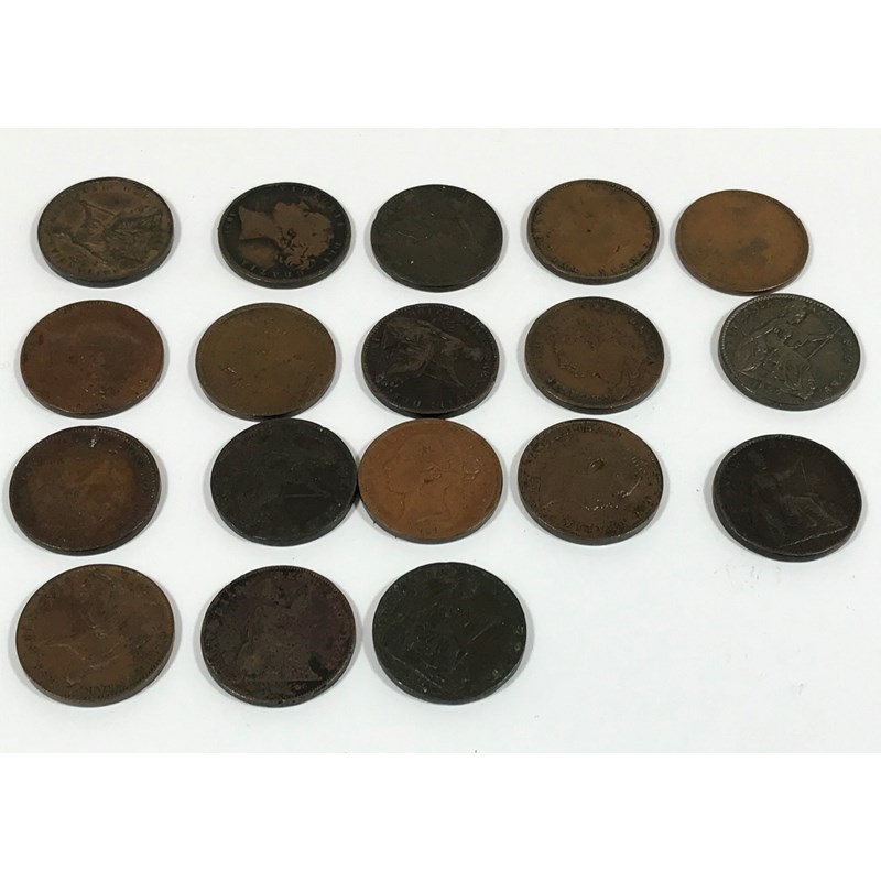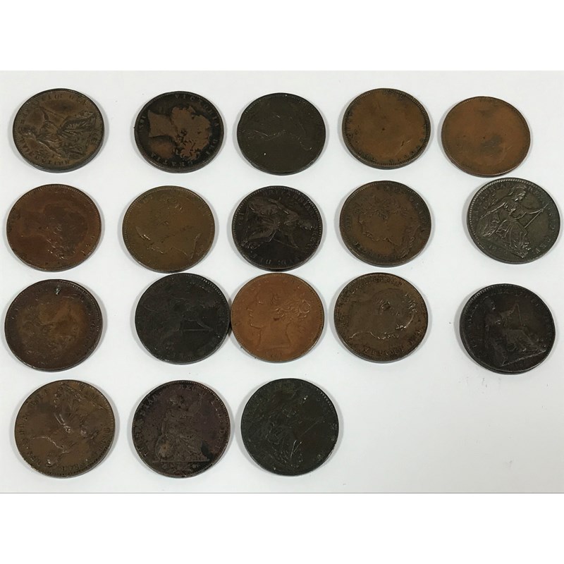 A COLLECTION OF FARTHINGS GEORGE III TO VICTORIA. Farthings 1821 (2), 1822 (5), 1823 (3), 1835, 1849, 1850 (4), 1851 and 1852. 18 coins.