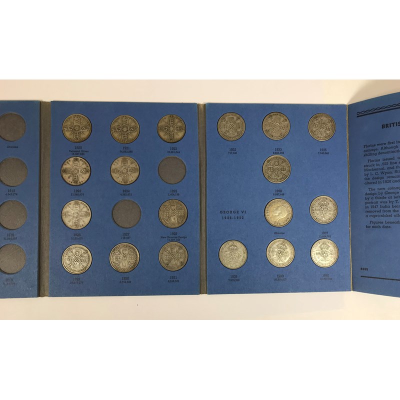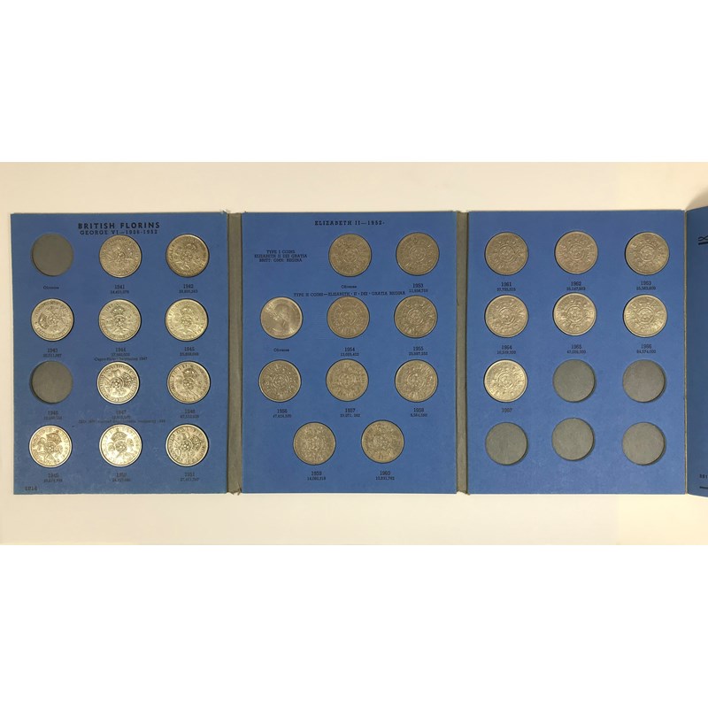 Florins 1911-1940 (incomplete) 1920-24, 26, 28-33, 35-40. 1941-1967 (incomplete) 1941-45 47-51 53-67. Shillings 1953-1966. Various other Shillings, sixpences, threepences, pennies and half pennies. A lot.