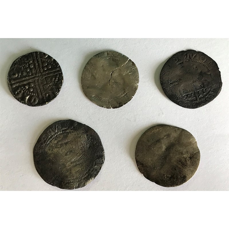 A HENRY III PENNY AND OTHERS. A Henry III hammered Long Cross Penny and four further hammered coins. 5 coins.