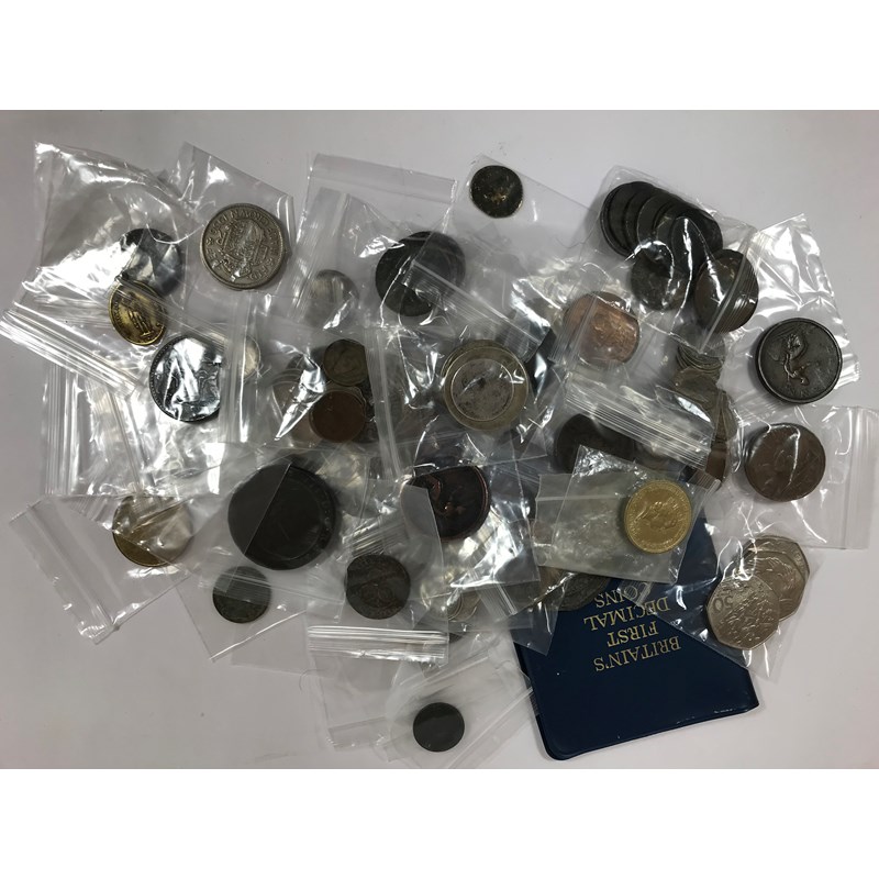 A quantity of world and UK coins to include a William III Halfpenny, 1797 2d, Predecimal silver, jetons and others. A lot.