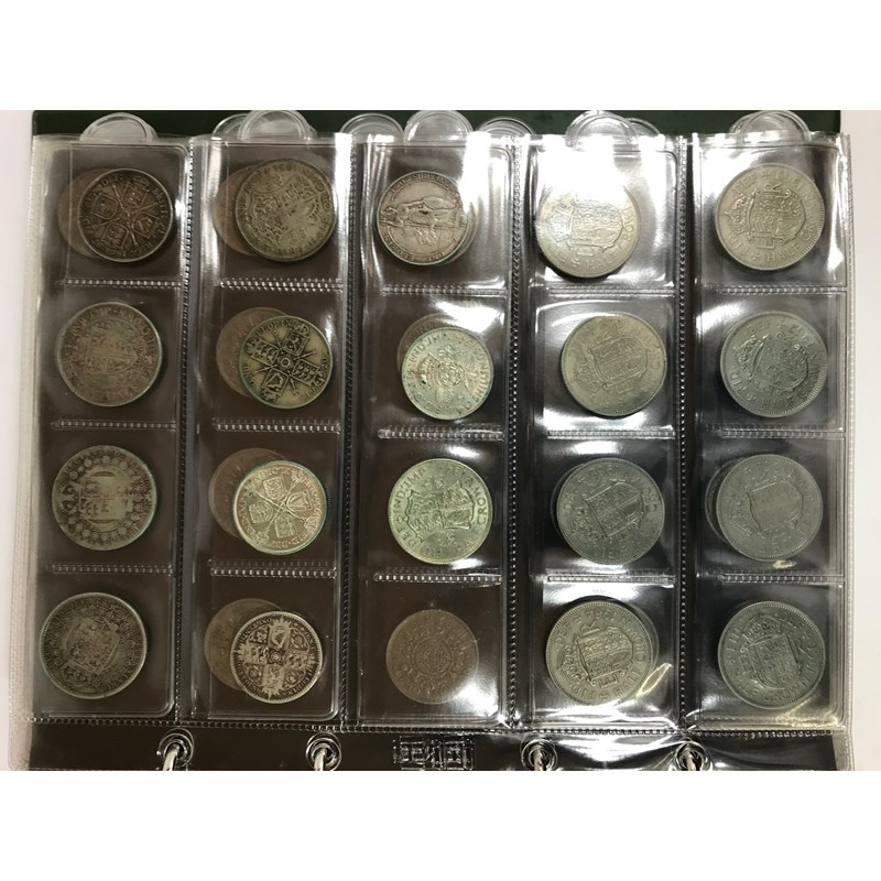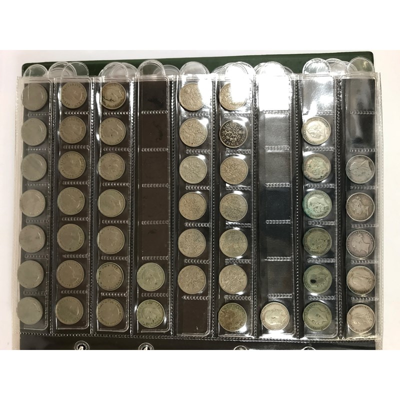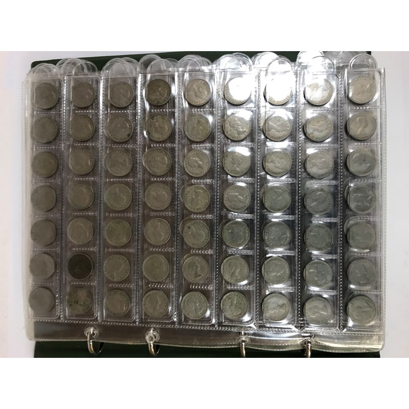 An album containing a large quantity of pre-decimal coins to include, sixpence, threepence, halfcrowns, florins, pennies and half pennies. Victoria and later the majority 20th century. a lot.