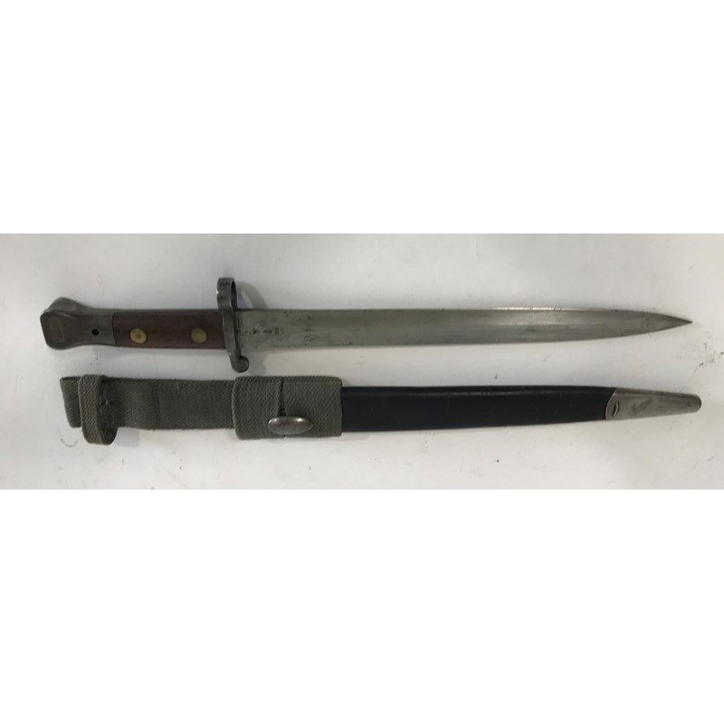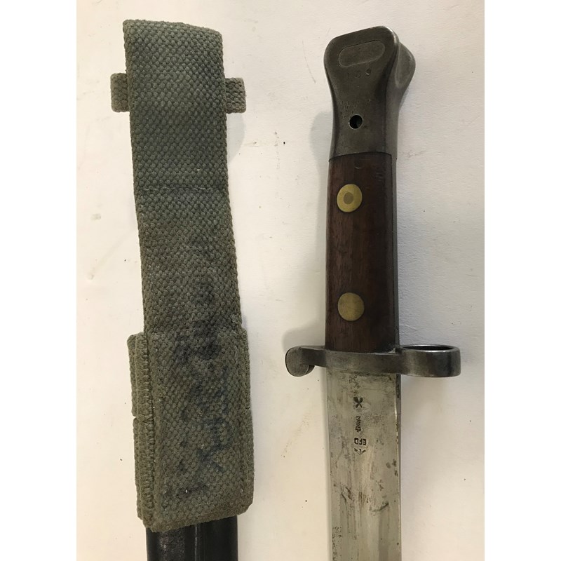 A BRITISH 1888 PATTERN BAYONET AND SCABBARD.