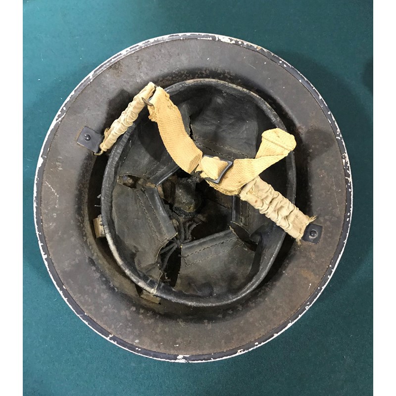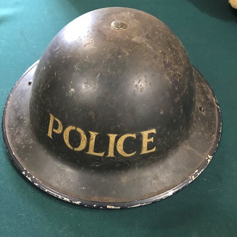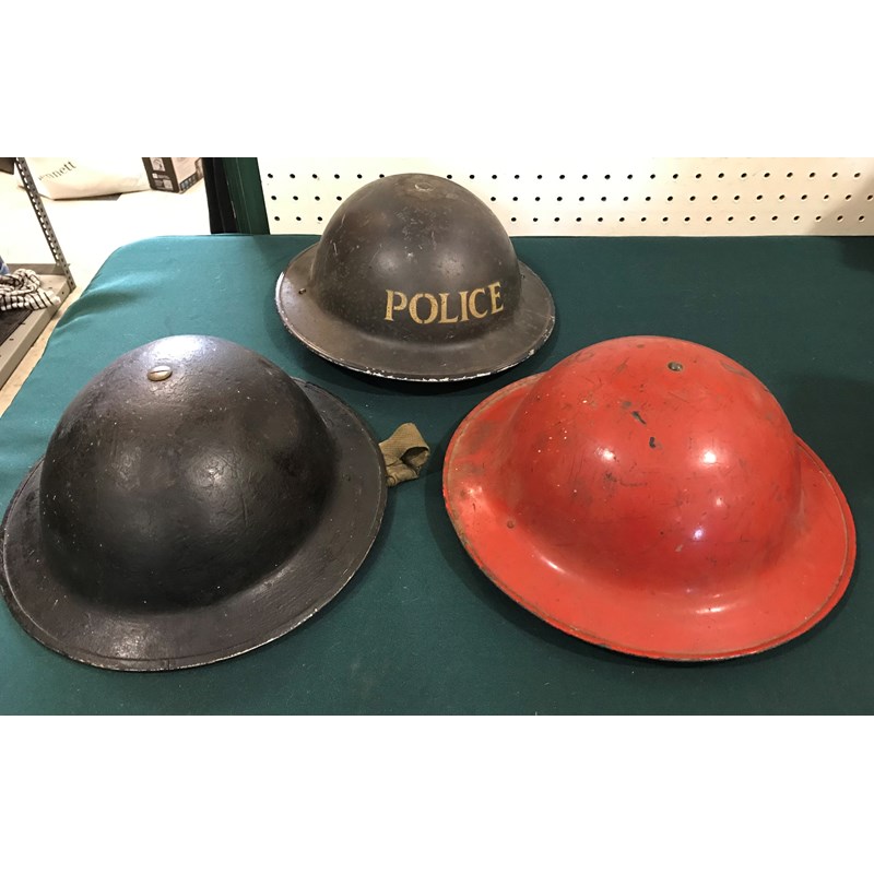 A WORLD WAR TWO POLICE 'TIN HELMET' AND TWO OTHERS.