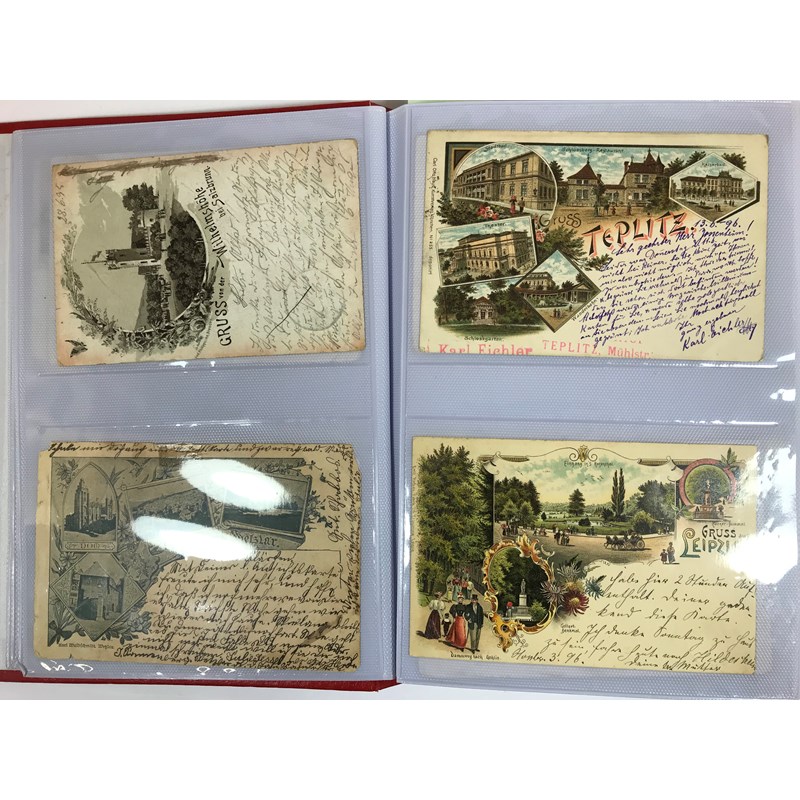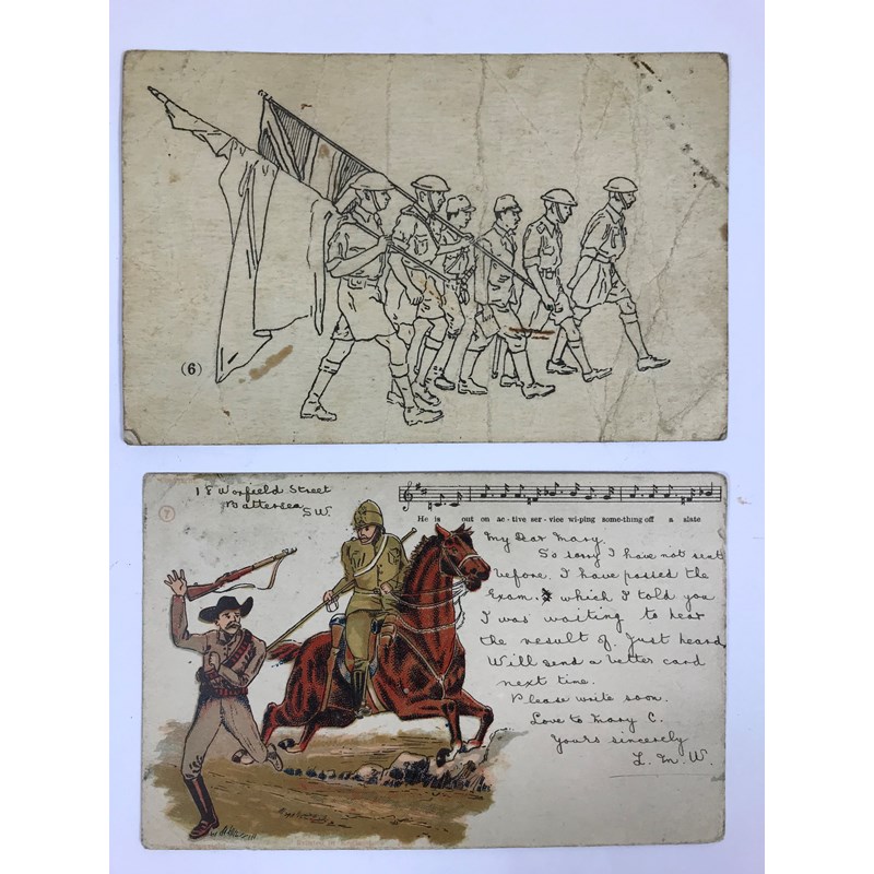 A collection of postcards contained in three albums of First World War and similar early 20th century postcards to include images of airships, submarines, humours cards, soldiers in uniform and many others. Approximately 250 cards.