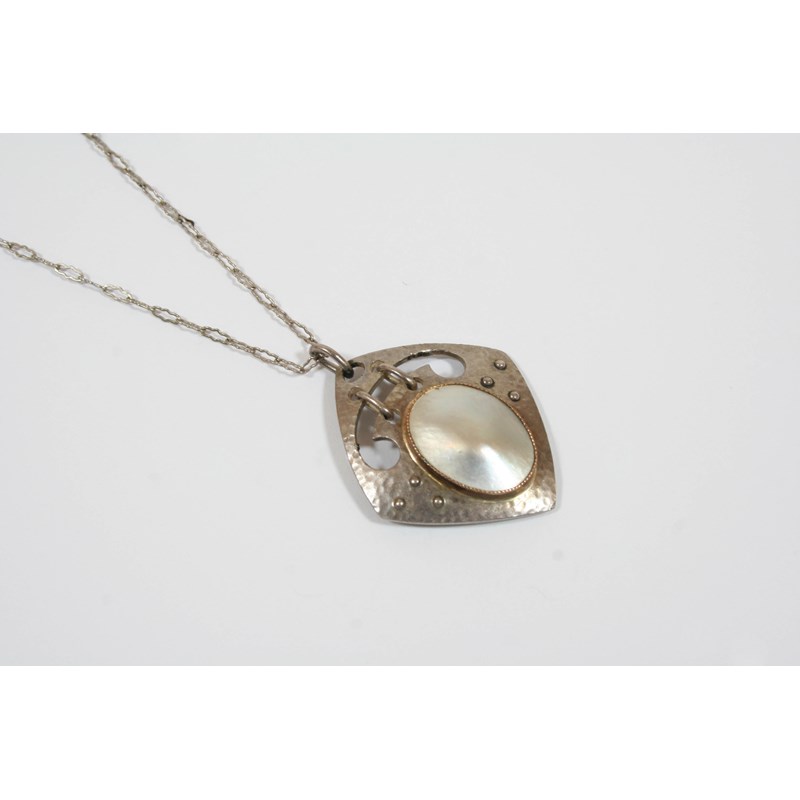 A MOTHER OF PEARL AND SILVER PENDANT BY MURRLE BENNETT & CO.