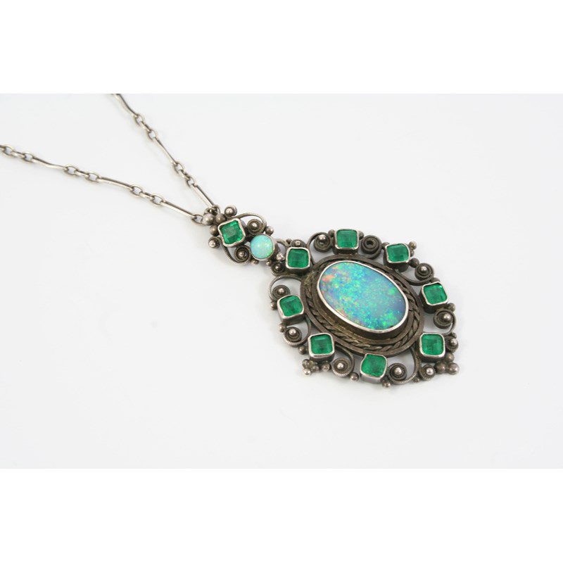 AN ARTS AND CRAFTS BLACK OPAL PENDANT